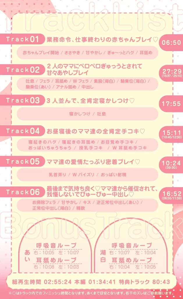 【Live2D特典付き】二人の秘書ママにべったり密着あまあま赤ちゃんプレイワーク♡ 赤ちゃんプレイ 2026.02.23 赤ちゃんプレイ 2026年かの仔キスこやまはるパイズリバニーガールバニーゲームスラブラブ/あまあま手コキ耳舐め赤ちゃんプレイ サークル「バニーゲームス」のR18音声作品です。 秘書の女の子2人にママになってもらって……いっぱい甘えて抱きしめられて愛されるお仕事がお忙しい貴方の、秘密の息抜き時間♡ 是非ご堪能ください♡ 声優:かの仔 こやまはる タグ:バニーガール 赤ちゃんプレイ ラブラブ/あまあま キス 手コキ パイズリ 耳舐め この作品のダウンロードはこちら この作品のダウンロードはこちら