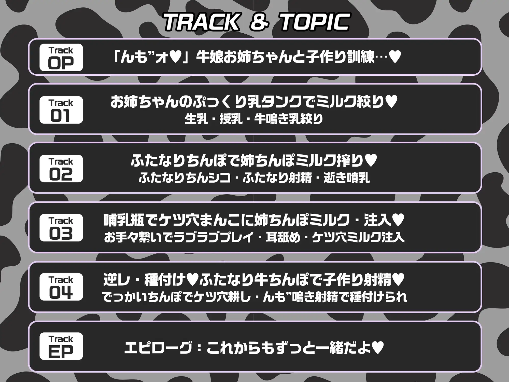 『子供を産むのは男の役目』、ですよね♡子供を産める年齢、もとい大人になったあなたは牛娘なメイドさんに呼び出され、なんとメイドさんと一緒に『子作り』のお勉強をすることに──!?幼いころから、母親同然に自分を可愛がってくれたメイドのお姉さん。そんな大事なお姉さんと子作りなんて…と戸惑うあなたに突きつけられたのは お姉さんの、立派な、勃起した──『ふたなりおちんぽ』♡牛娘メイドお姉さんに・逆レ種付けられちゃうモォ~~♡